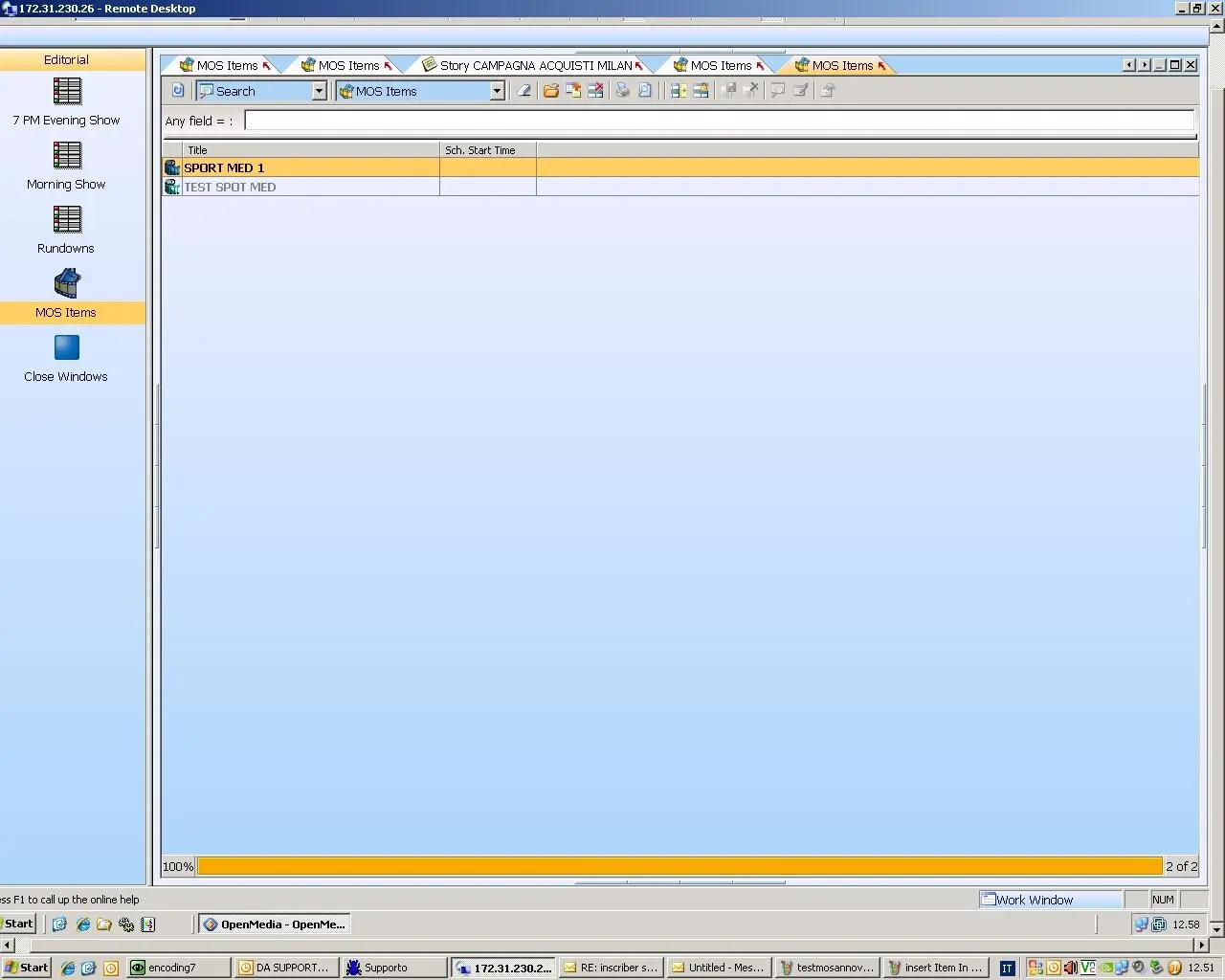 5. A new tab will be opened, and there will be possible to insert the items. On the left, under the 'MOS Items' tab, there will be listed the objects coming from Etere