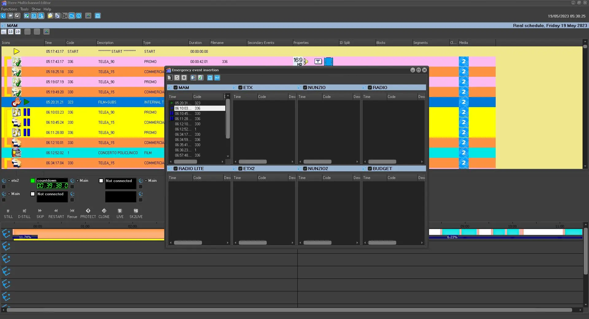 4. The asset will be inserted in all the selected automation schedules at the selected positions, making the schedules scroll down for the total duration of the asset (e.g., one hour):
