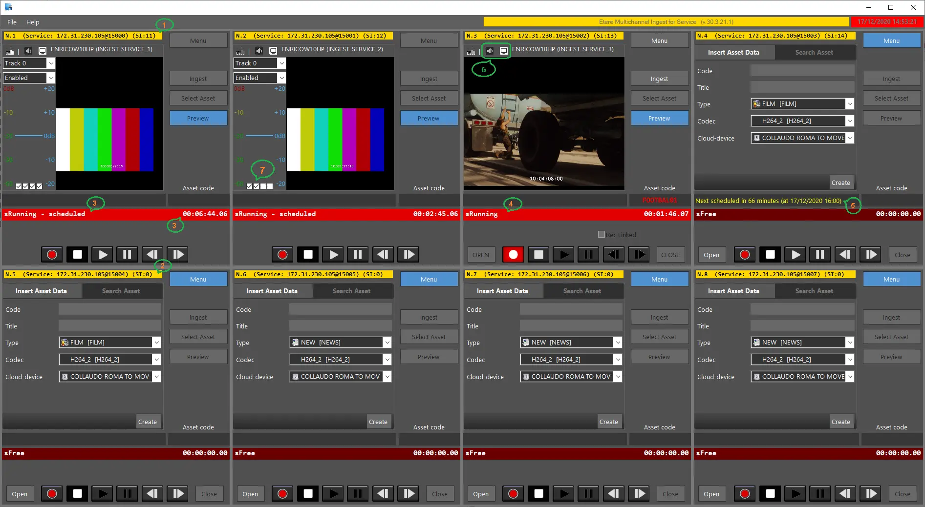 •Point #4: The dedicated ”eRunning” recording status indicates a manual ingest in progress with the running counter.