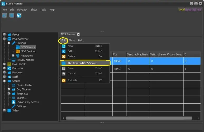 Once the above steps are complete, we can start configuring the NCS Server and all the required MOS Devices which need to be controlled through Etere nunzio.