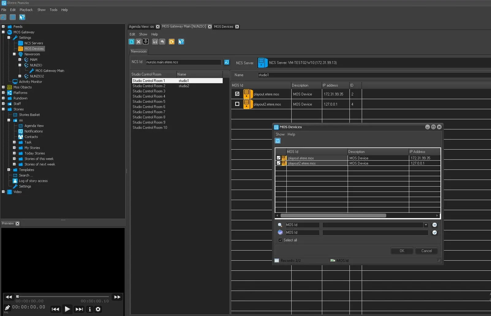 In Etere Nunzio is possible to manage multiple Studios within the same station, and assign to each studio a list of MOS Devices.
