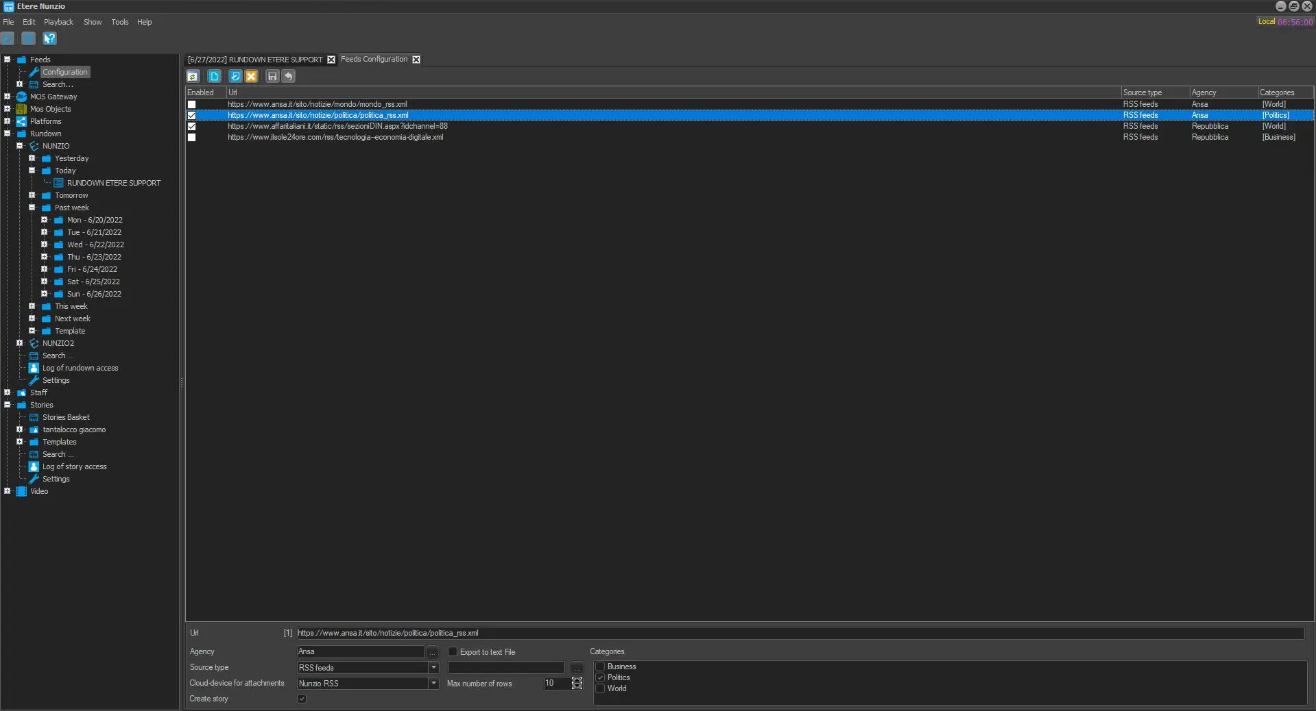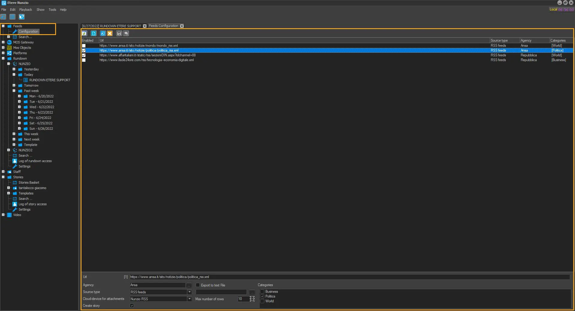 Categories - Check the categories to which the feed is related (e.g. politics). Categories can be added/modified/deleted in Stories > Templates > List of categories section.