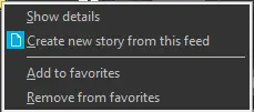 Create new story from this feed - Creates a new story (without video) based on the selected feed. When selecting a feed with videos present and right click on “Create new story from this feed”, the new story would be created with the “EDL Project” that contains all videos in the story.