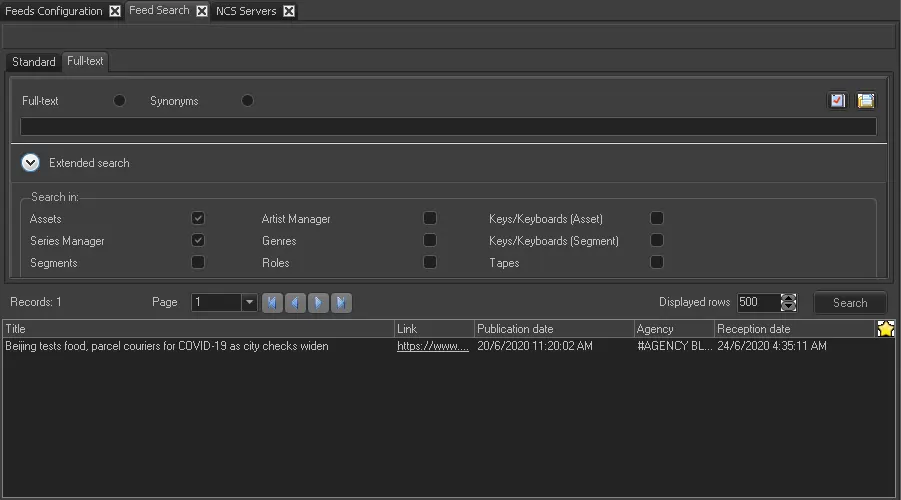 The Full-text search presents a google-like search where you can search for multiple words across all assets. Moreover, making right-click on a feed it will be possible to: