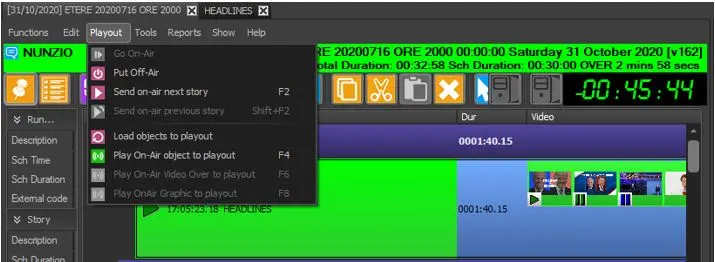 - Play on-air object to playout (F4) This function put on-air object to playout in Rundown.