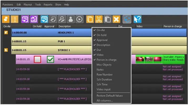 From the list of columns, simply select / deselect the columns to be appeared in the Rundown view. There are some special columns that require attention: