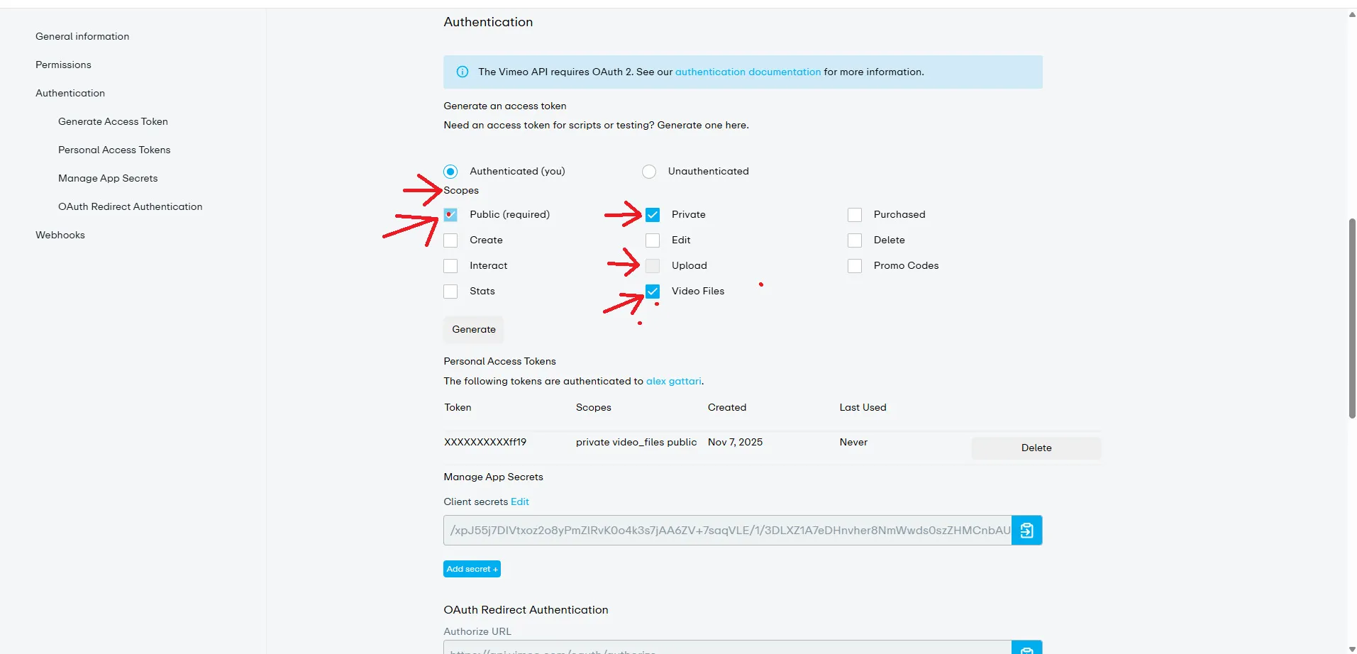 12. When the previous step is done, a list of "Scopes" options will appear.