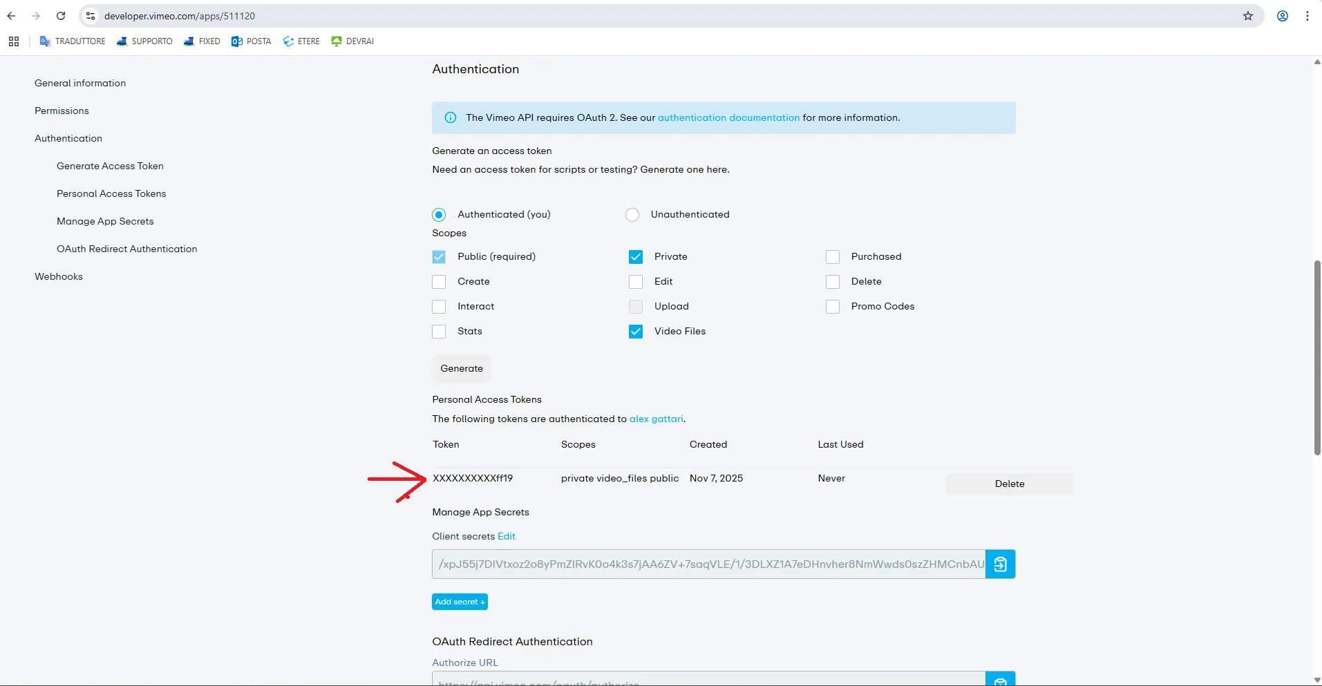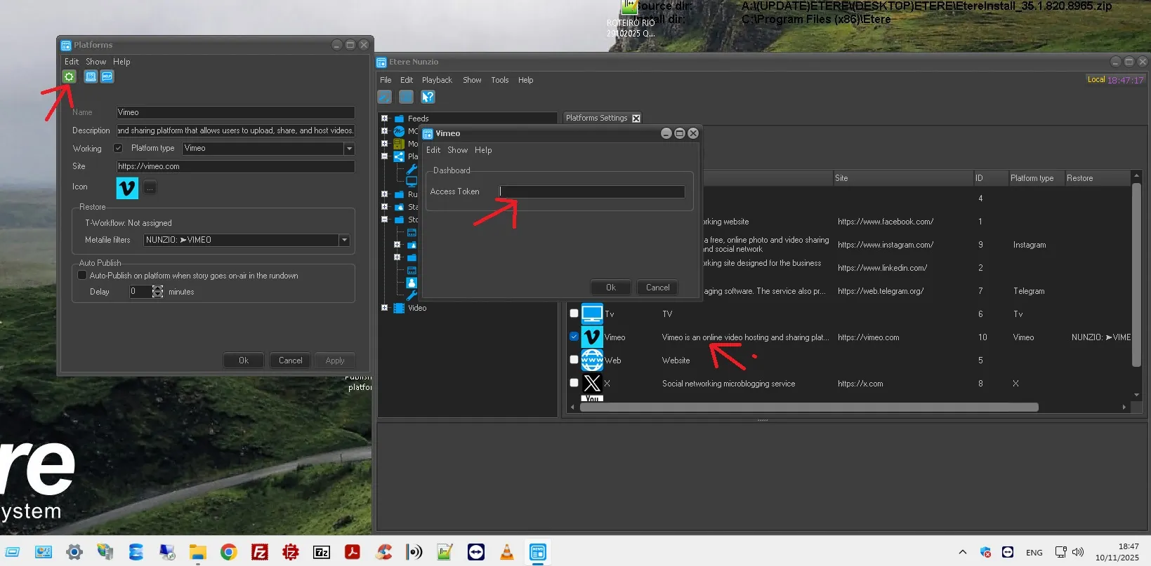 It must be copied into the "VIMEO" Social settings within the Etere Nunzio module as shown in the example image