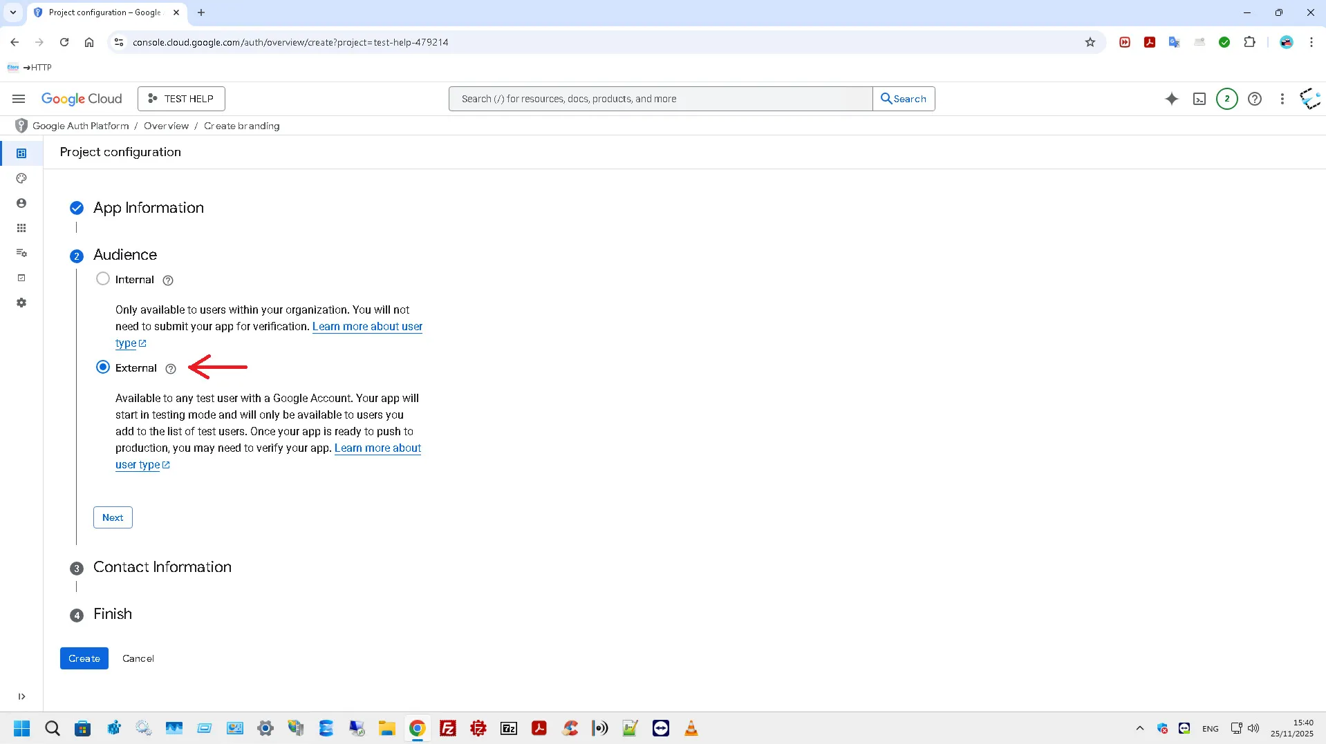 6. Go back with the arrow next to API Library and under the voice API & Services select OAuth Consent Screen