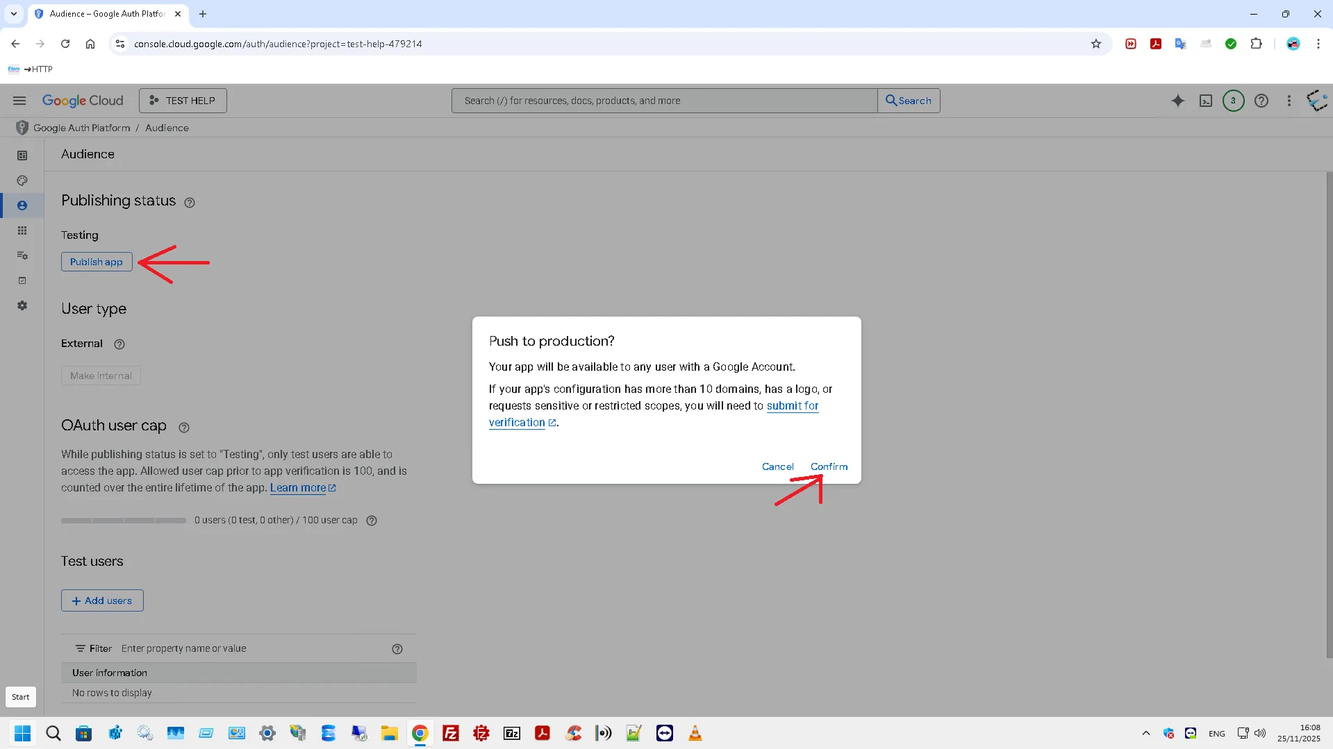 15. Click on the Publish app button and at the Push to production message, click on Confim