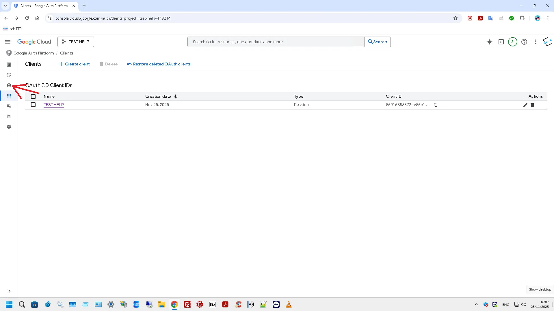 12. After point 11 you will be redirected to the list OAuth 2.0 Client IDs, click the Edit OAuth Client icon