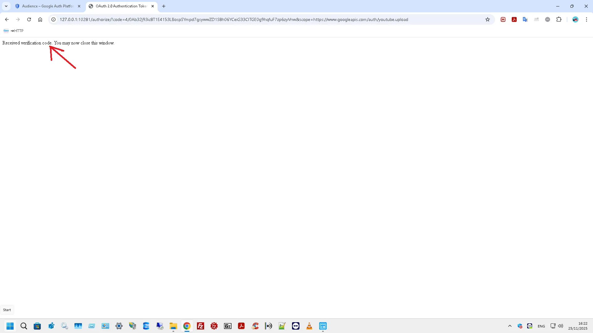 20. At the end of everything the message should appear in the browser "Received verification code. You May now close this windows"