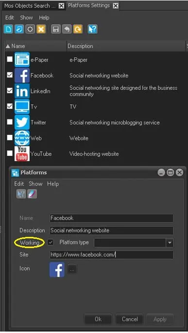 Note: When the configuration of a platform is changed, a restart of the Etere Nunzio application and service social media connector are required, in order to apply the new settings.
