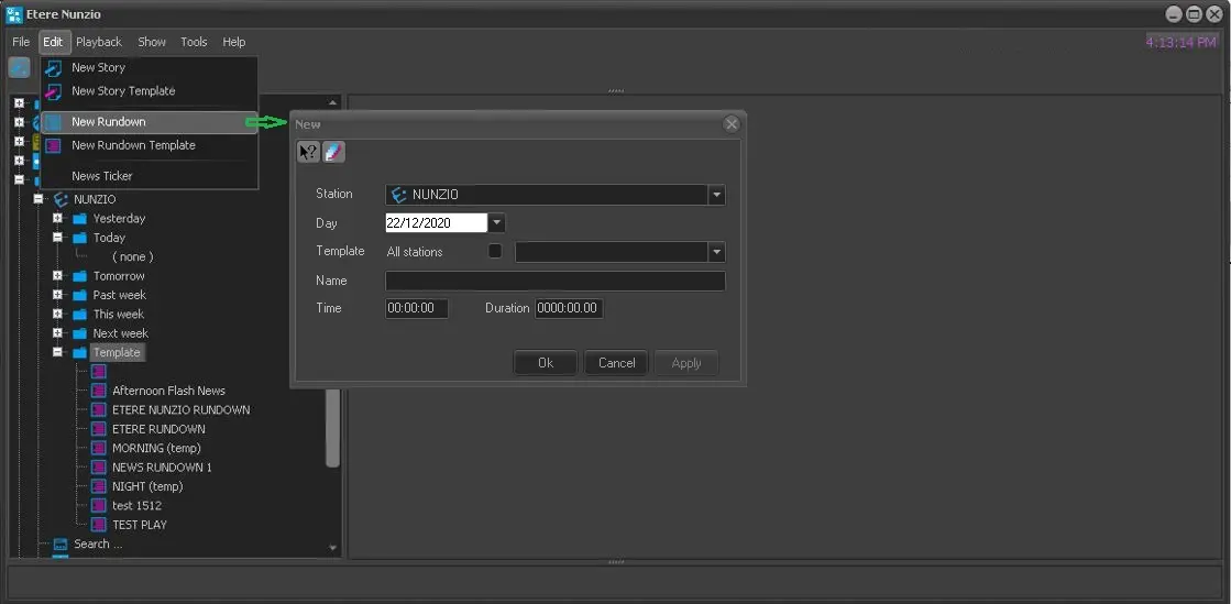 From the main menu, click on Edit menu and select New Rundown to create a new rundown.