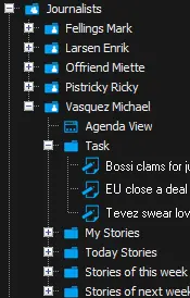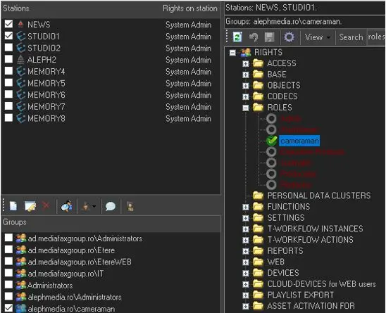 In the Staff tree node, all the users (e.g. journalists, anchorman, producer,, etc) and Active Directory groups that access to Nunzio are listed.
