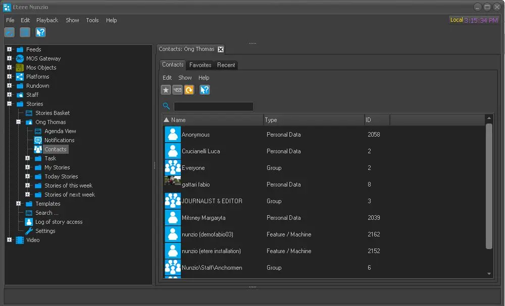 Allows adding staff to Favorites contact list with the Nunzio_NEW_Tree_Rundown_Story_Contacts_Add button or right-click on mouse.