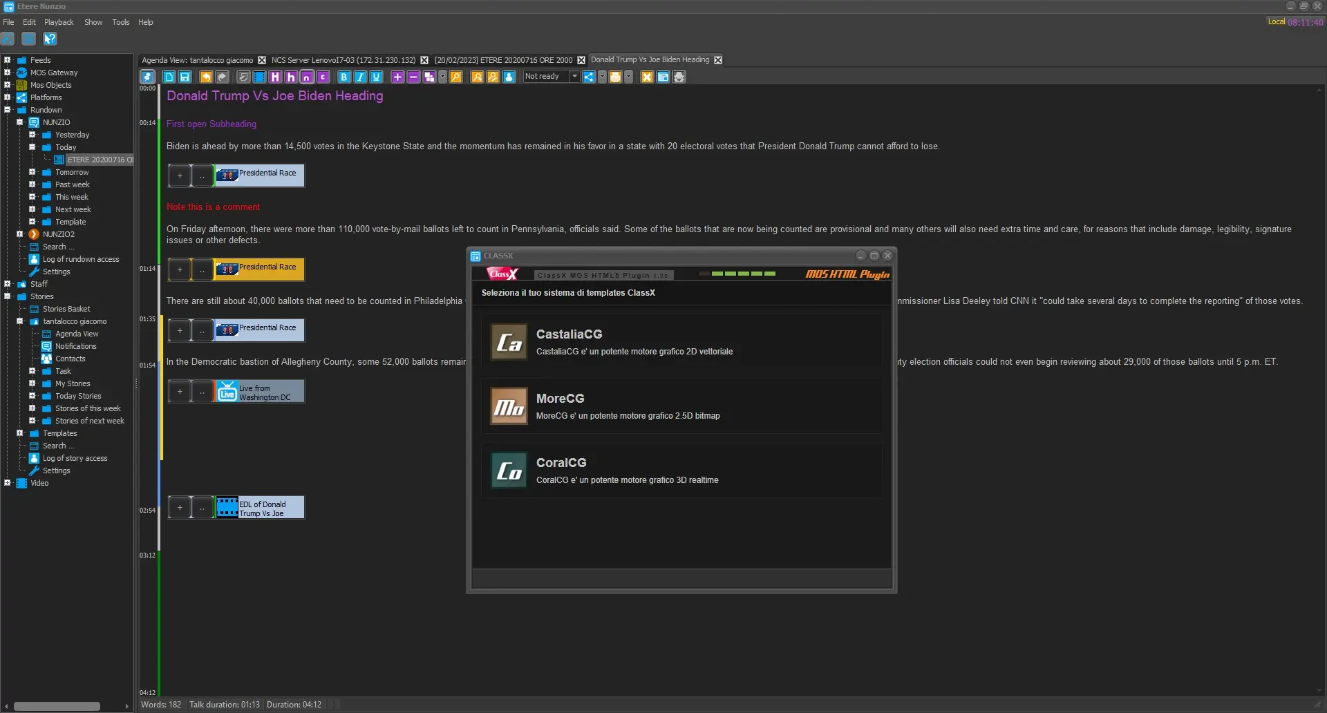 Etere Nunzio can be integrated with ClassX in order to manage any kind of GFX within the Etere Newsroom System.