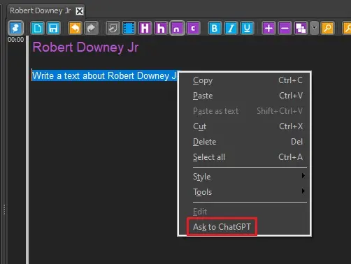 If everything has been setup correctly, in the story editor the option "Ask to ChatGPT" will be available in the contextual menu.
