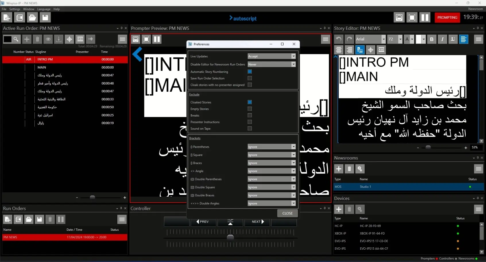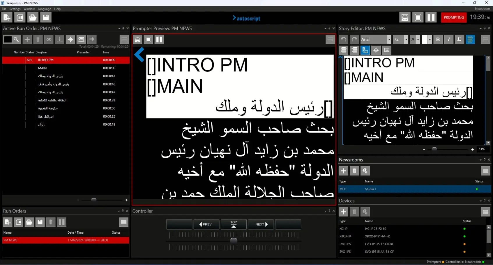 Once the configuration has been done, Nunzio can pass Running Order to Autoscript which will display all the related text info in their devices.