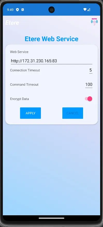Once we start Etere Nunzio App for the first time, the System will require to have the working URL for the Nunzio Web Service previously installed and configured.