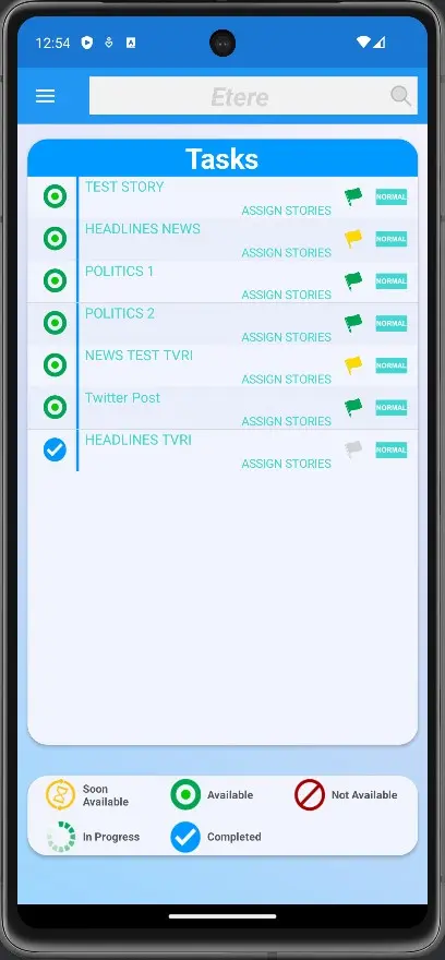 Once TASKS have been released for any user or group in the Newsroom, they would be available, by their state, all along the body of the TASKS page.