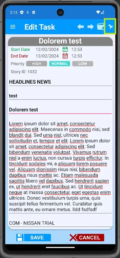 In addition, any TASK can be opened, and depending on its status is possible to EDIT and SAVE it according to the operators needs.