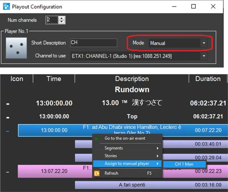 Following all the related configurations available once we run Etere Nunzio Videoserver playout.