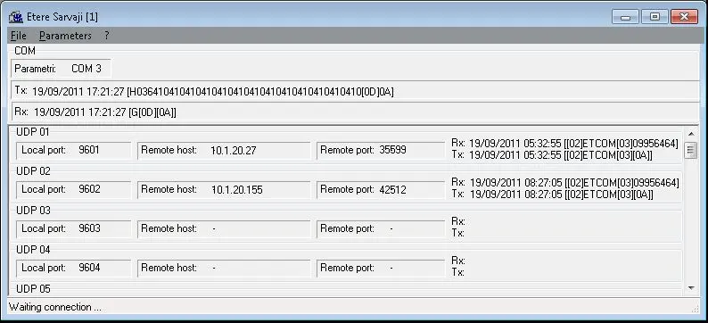 •UDP status display: visualizes the activity of each of the users that communicate with the software via UDP.