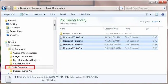 Select “Public Documents” folder where all the 4 ticker files are stored and click <OK> to confirm the folder selection. All files are opened in the News Ticker window for editing.