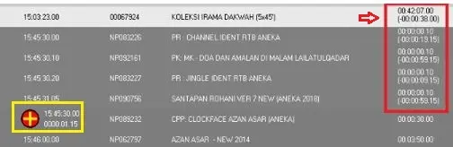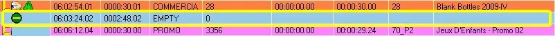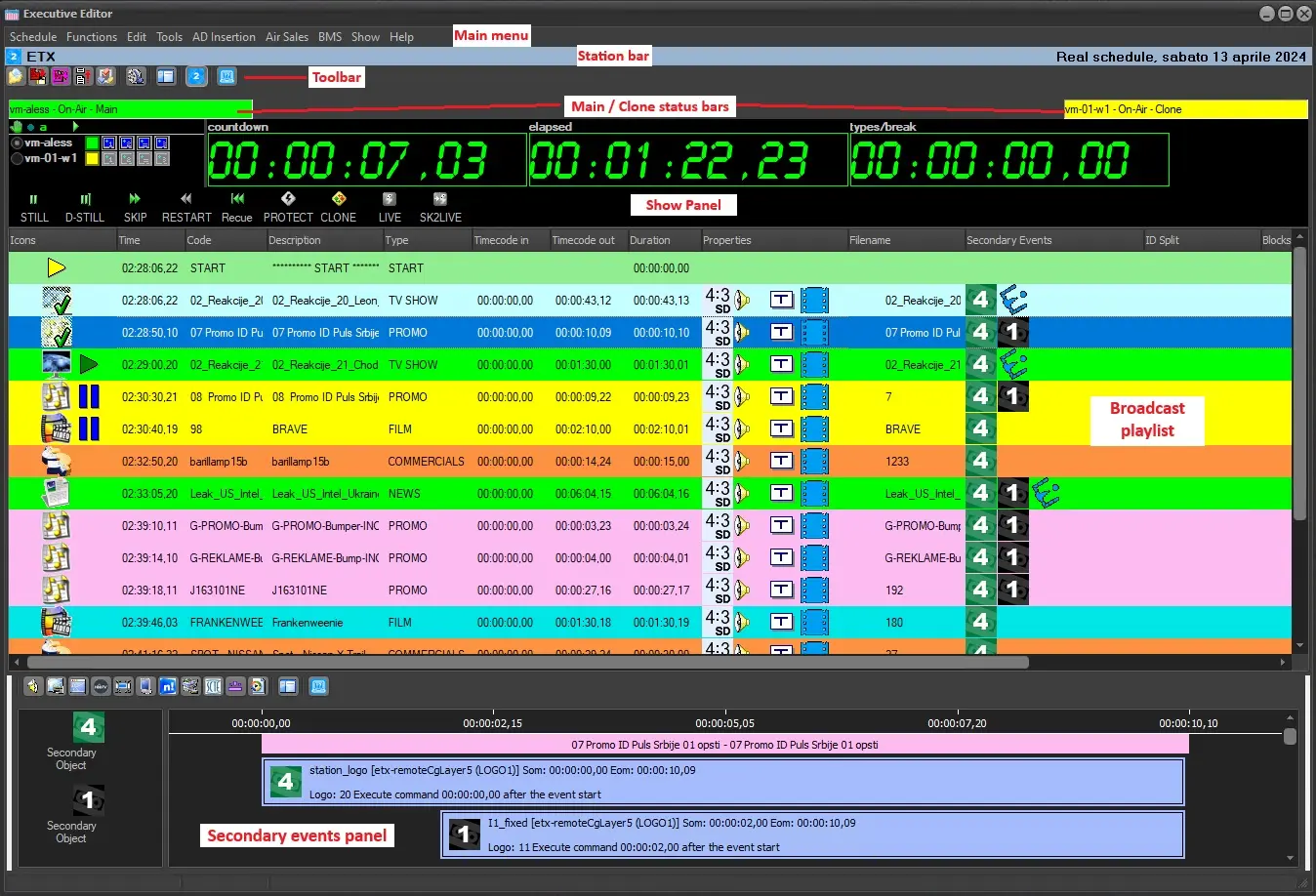 • Broadcast playlist: The schedule containing all the events currently scheduled in the selected day, detailing -across various columns- their various properties.