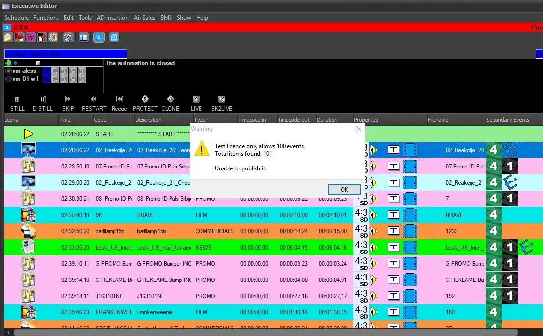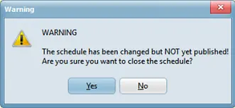 If you attempt to close Executive Editor when there are schedules yet to be published, or open another schedule date, the following warning message would be prompted to alert user and request for confirmation to execute the close command. This warning message would only be available in workstations with the “Playlists publication” rights enabled ("Allowed").