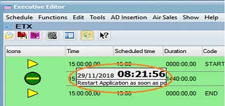 Each Etere application allocates a maximum number (set at 3500) of handles counts for recording the details log data during operations. If the handles count exceeds the maximum count allocated, an application message “Restart application as soon as possible” would be prompted to alert user, as indicated below.