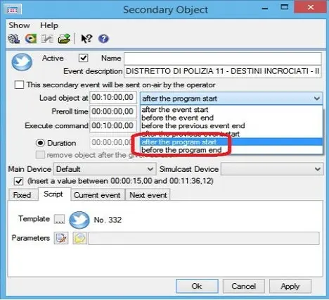 •Active: Tick off this parameter to enable the secondary event, leave it unchecked to disable it,