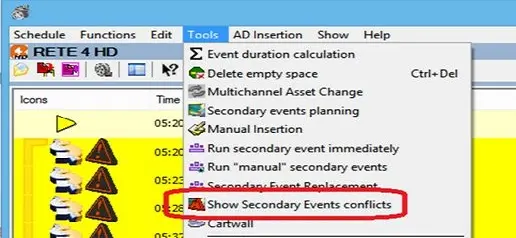 In Executive Editor, for better management of Secondary Events you can check for all scheduled secondary events and detect the conflicts. From the Tools menu bar select Show Secondary Events Conflicts from the drop down menu to display conflicts found in the scheduling.