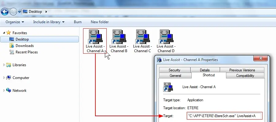 In order to do this just modify the normal Etere Scheduling shortcut by appending to it the "liveassist=x" parameter, said parameter dictates the Video Assist channel to be open, it can be 1 (or A), 2 (or B), 3 (or C), 4 (or D):