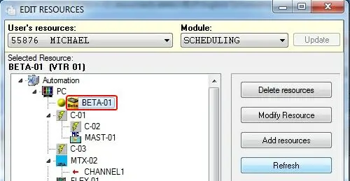 •Click on the [Modify resources] button and make sure that the VTR Type is set to "PLAY".