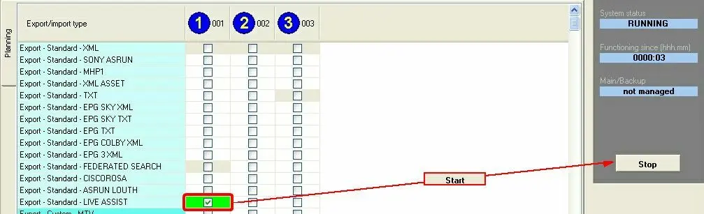 •Automatically: Open the Etere F90 module, enable the 'Video Assist' export and start its automatic execution (according to the frequency set for the said export):