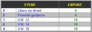 The "N" value of the <Parental_Rating country="ita" minimal_age="N"/> tag is exported based on the convention below: