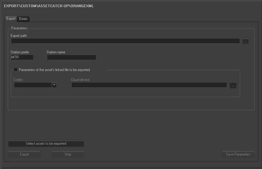 The Orange export allows you to create a file in XML format, containing the data asset.
