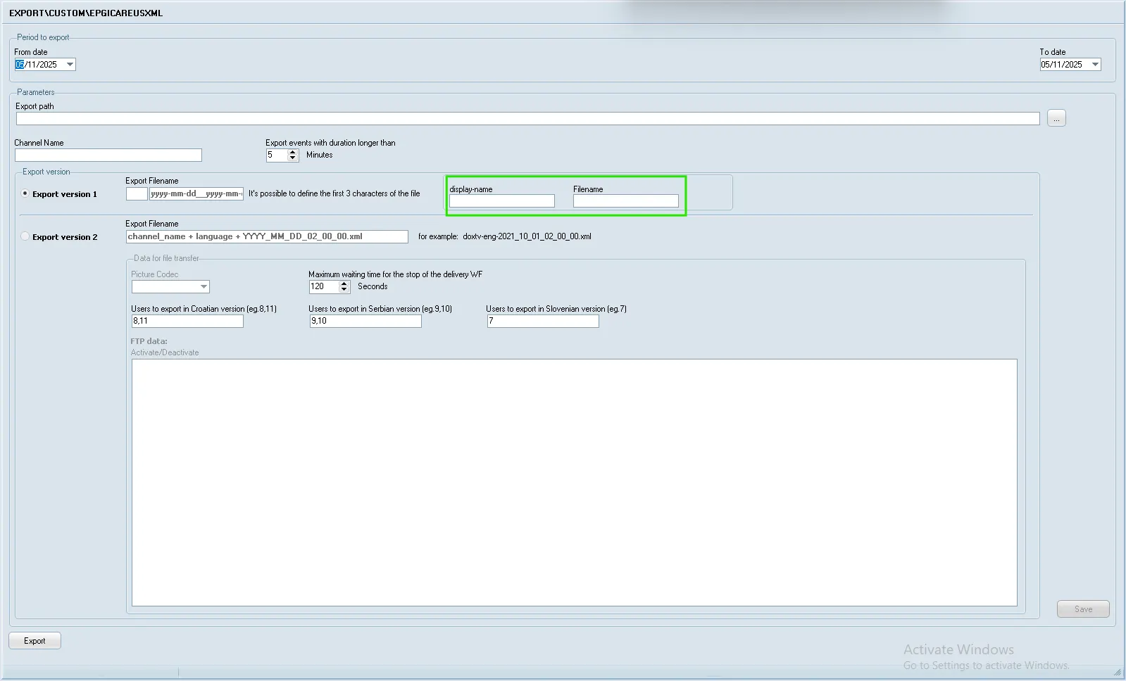 Starting from Etere version 31.3, two XML files would be generated when Export version 2 is enabled. One XML file in English version, and one XML file in Serbian version, with the respective file name as follow: