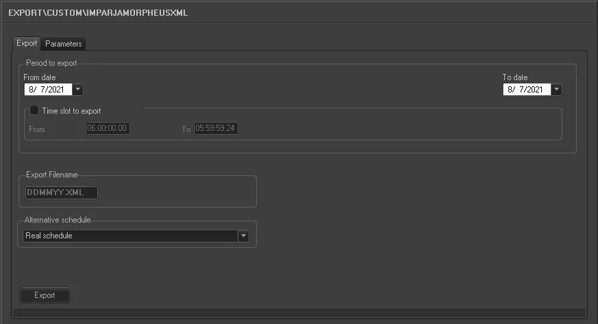 The Imparja Morpheus XML export allows to create a XML file containing all primary (and secondary) events scheduled across broadcast playlists within a given period of dates and times.