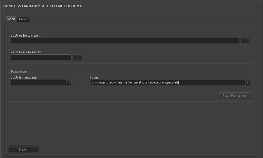 Parameter - Subtitles file to import