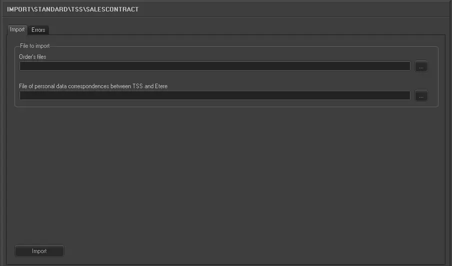 •Order's files: Browse for the file to be imported, it doesn't must have a special format, it only needs to be a text (.txt) file.