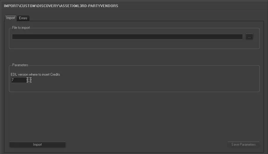 The "Discovery - Asset XML 3rd-Party Vendors" import allows retrieved from an XML file a set of metadata related to a particular asset.