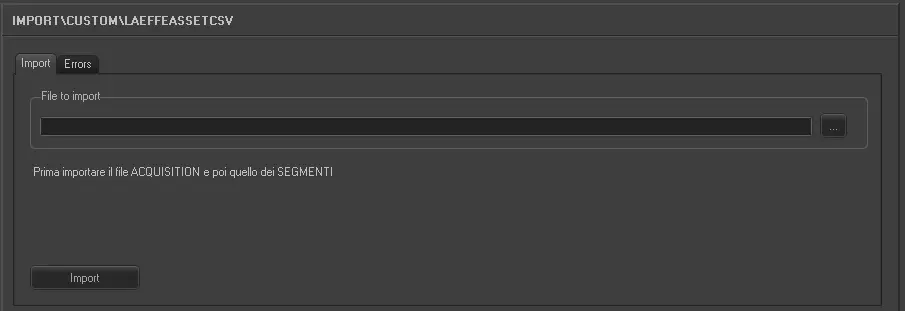 Once all parameters have been correctly set, just press the <Import> button to launch the import operation.