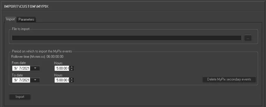 Please note that MyPix secondary events cannot be imported into past days.