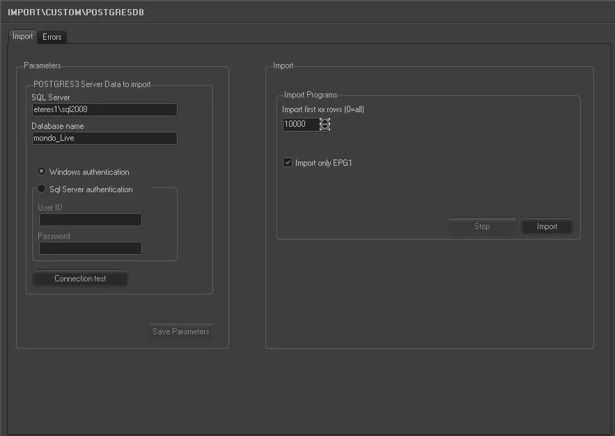 oWindows authentication: Select this option if the importation would be authenticated by Windows user ID and access rights created in Windows Active Directory.