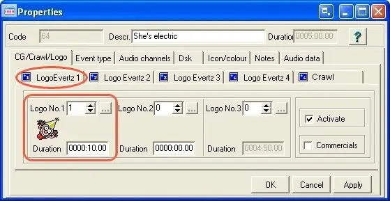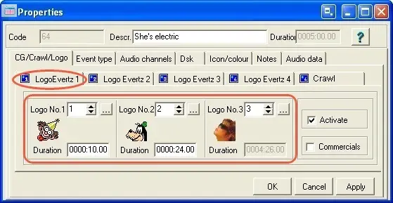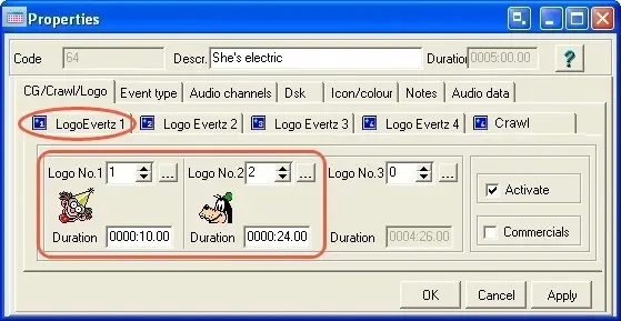 DSK1_DUR - Duration of the event in frames (e.g.: 100), insert it just if you want to import more than one Logo (e.g. Logo1 and Logo2).