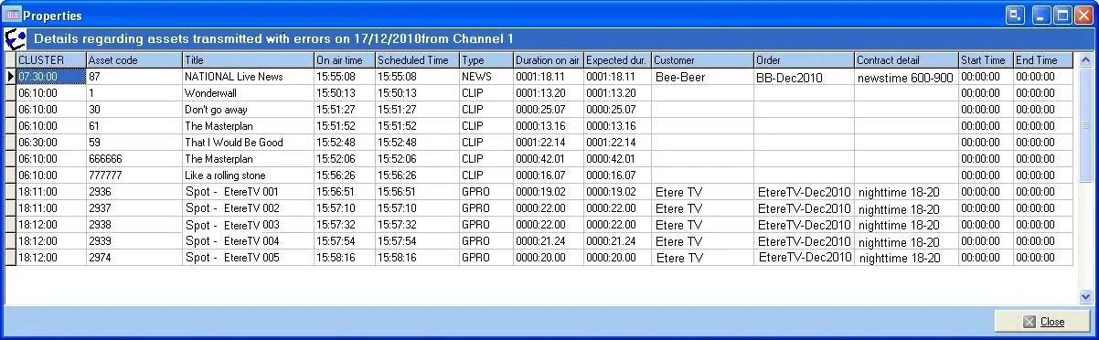 •Different codes: Events present in the approved schedule with a code which differs from the one present in the on-air schedule (e.g.: it was manually modified by the operator, it belongs to an imported event, etc).