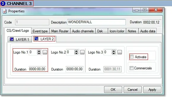 It's worth mentioning that the copy function will keep the event's set logos which are configured in both stations. This behaviour is very useful, for example, when copying the entire programming of a main channel (e.g. channel1) to a shifted channel (e.g. channel1+) that features a different logo (in this case it will be enough to not configure the main logo in the shifted station under the same layer).